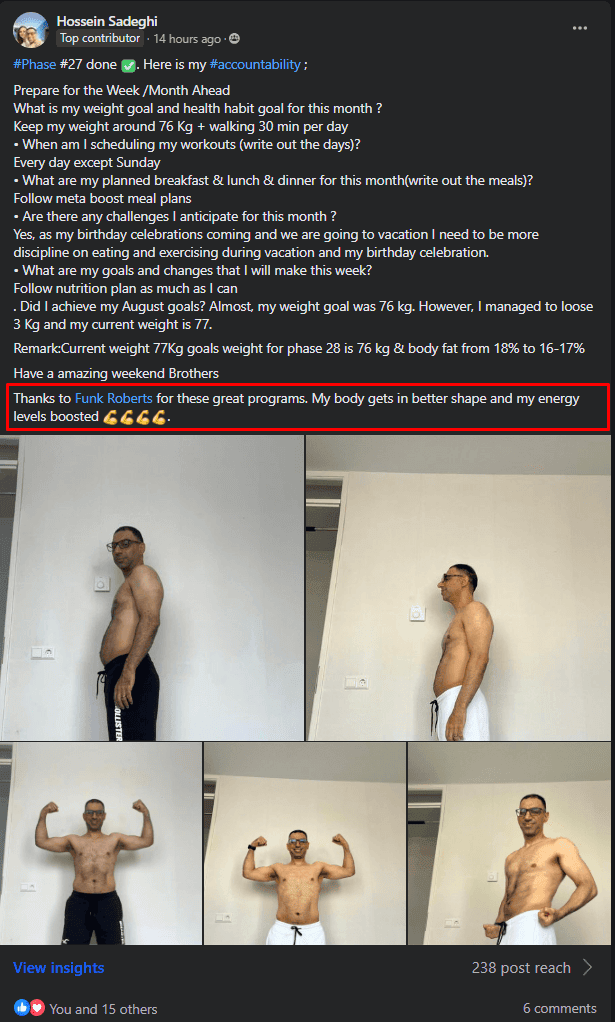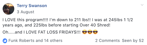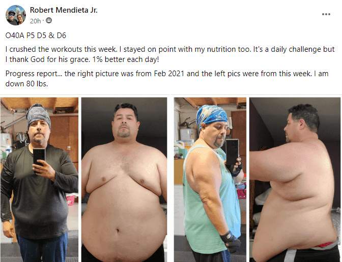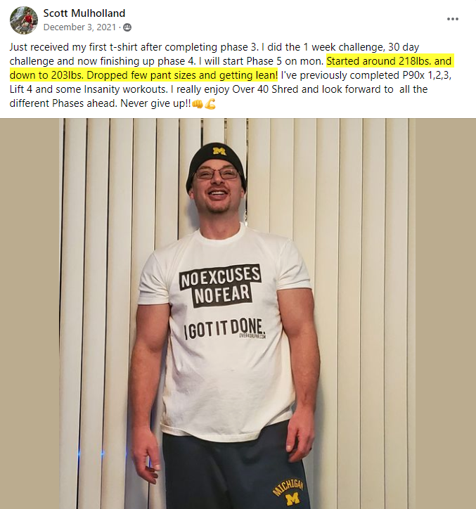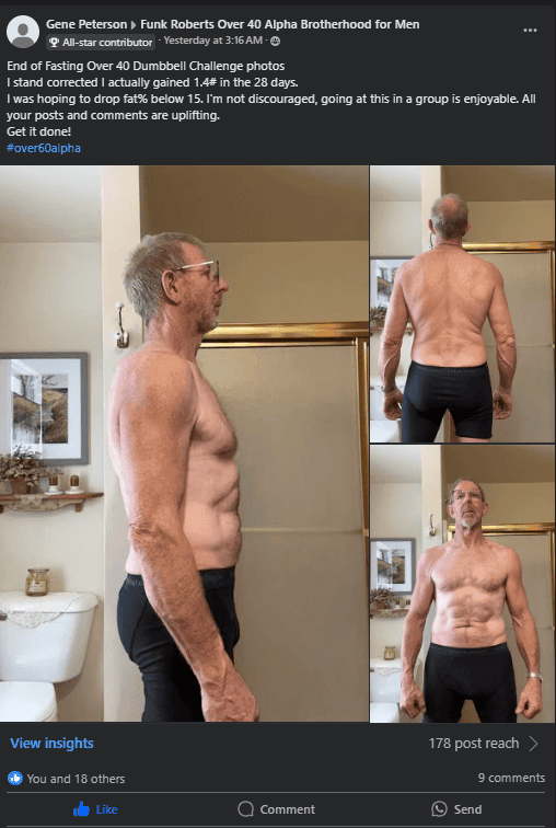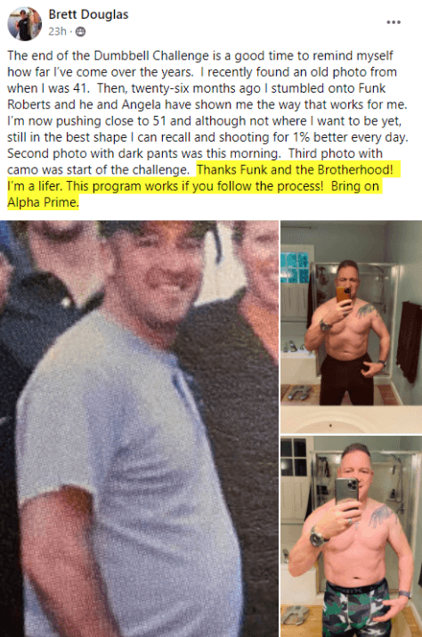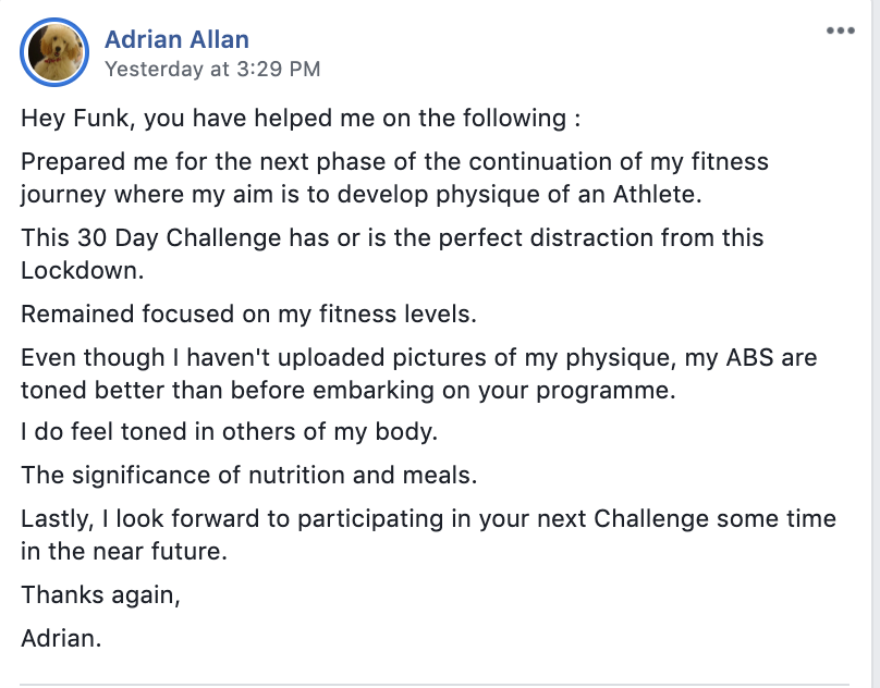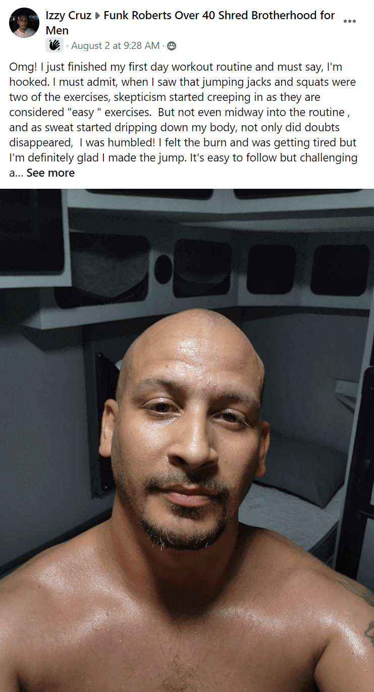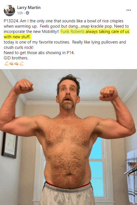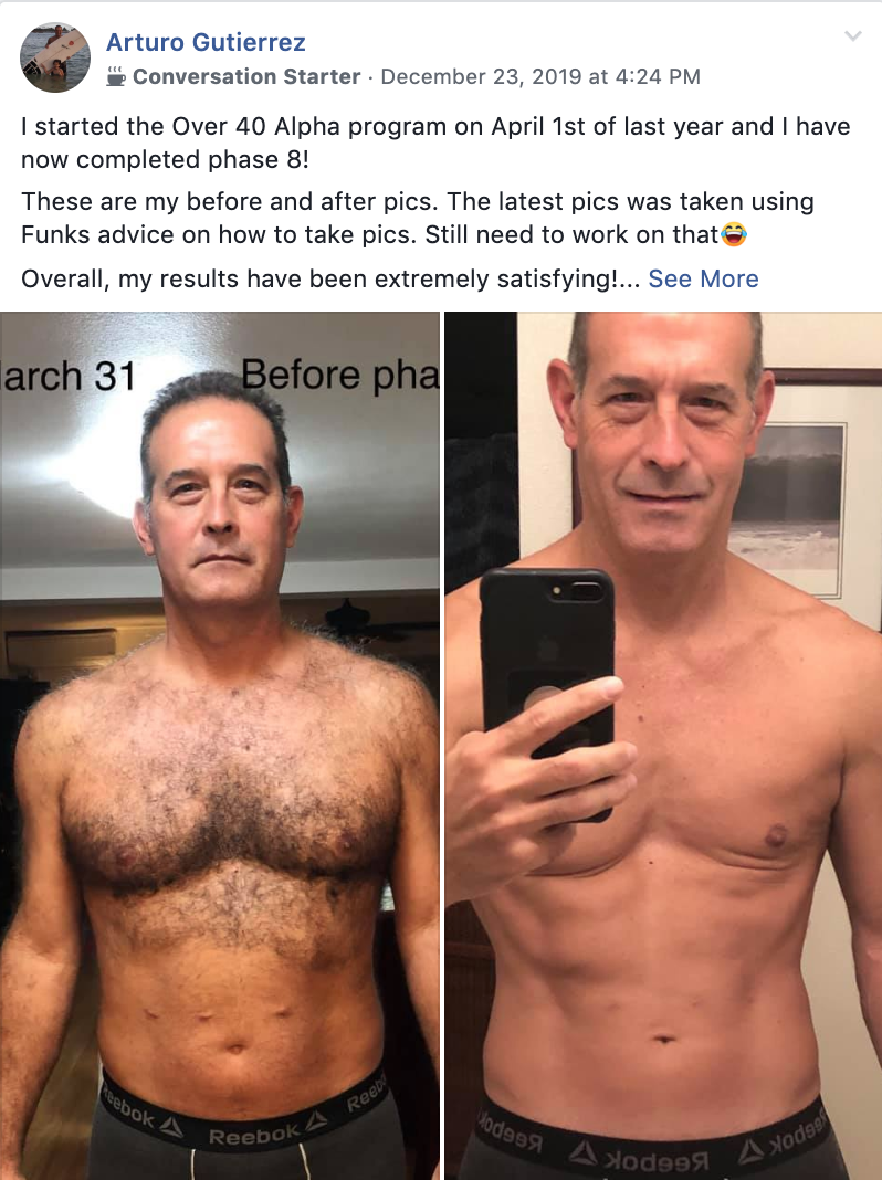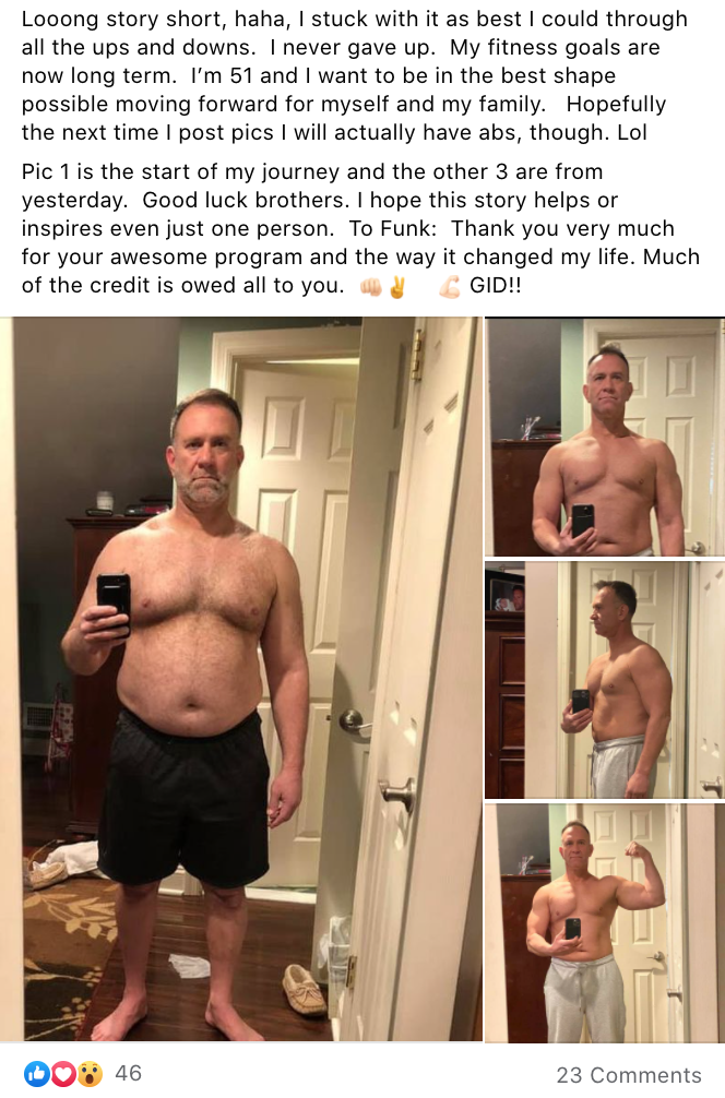 "The Over 40 is very adequate for my age, the workouts I used to do are hard with my age. As a physician, these type of exercises are great for our age. I have changed my life with this program. Thanks for everything Funk"