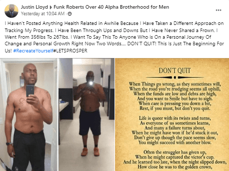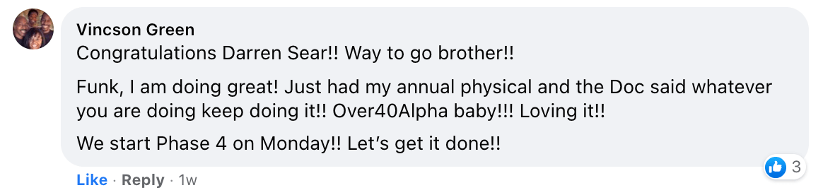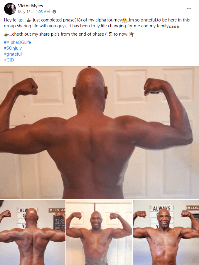 "I'm one of the Alpha brothers using the program. This program has got me in better shape, my cardio is a lot better, but the motivation and accountability is the gamechanger. It is like a team and the accountability has been a blessing."